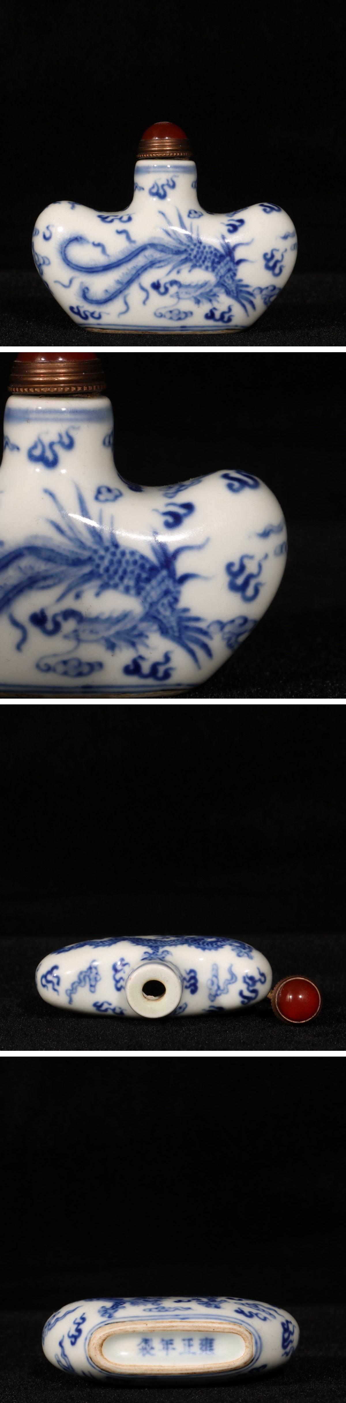 【清】関西某オークション購入 中国伝来 清時代物 大清雍正年製 青花龍鳳紋鼻煙壺 当時物 時代コレクション8L1-YS3 收藏