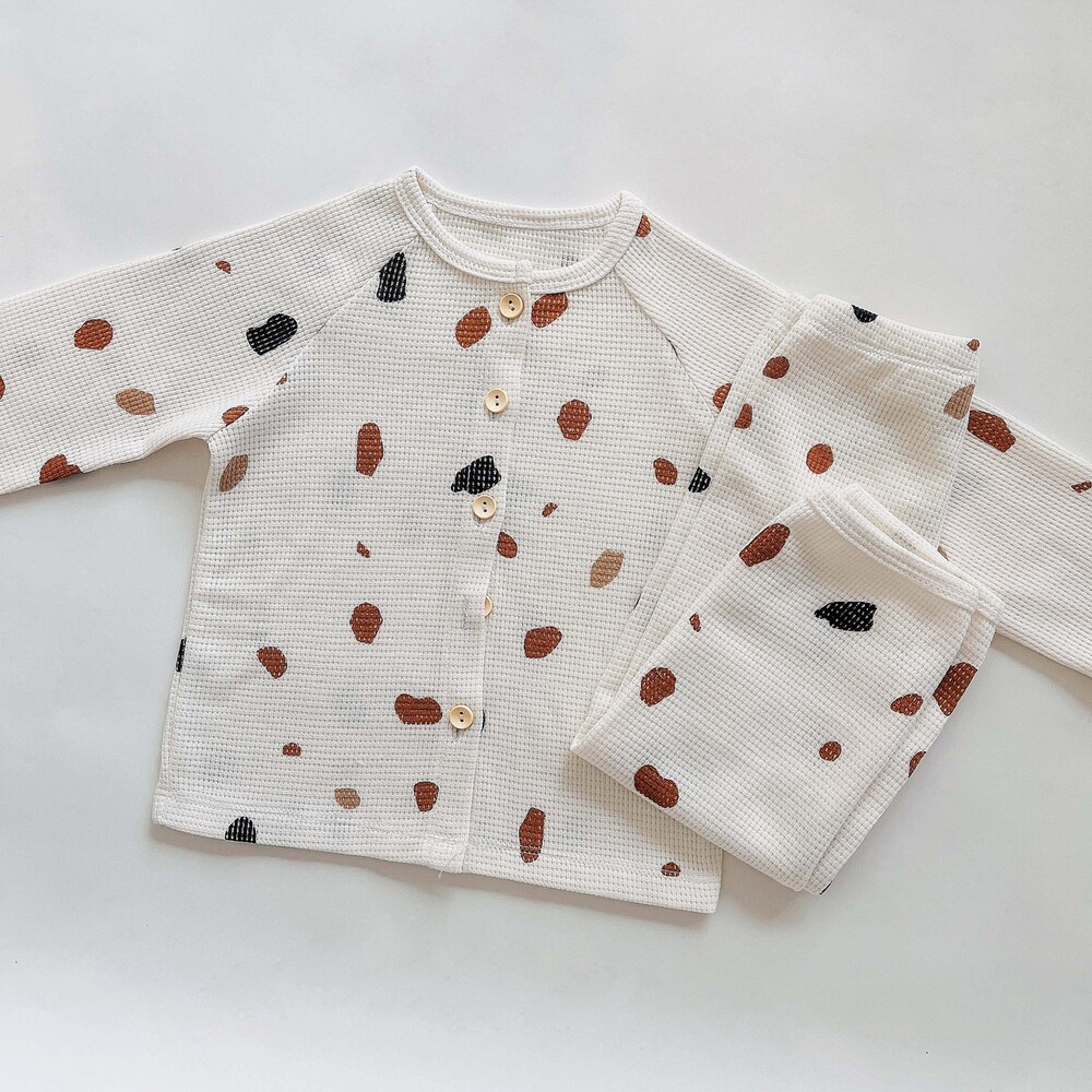 | 商品説明 | ・・おうち時間を快適に♪自然な風合いで着心地も抜群な、キッズ用パジャマが新登場。 ・【サラッと軽やかなワッフル生地】 ・コットン素材を使用し、柔らかくチクチク感のない肌触り。汗をかいてもムレにくく、爽やかな着心地をキープ。秋冬は保温性を発揮◎ ・【ロングシーズン活躍】 ・・1枚で着るのはもちろん!肌寒い時期はお手持ちのカーディガンなどを羽織れば、長い期間楽しめる! ・【着替えがスムーズなトップス】 ・簡単に脱ぎ着できる、フロントボタンタイプの長袖トップス。首元が詰まりすぎないネックライン!ウッド調のボタンがアクセントに。 ・【ストレスなく履けるロングパンツ】 ・締めつけ感のないウエストゴム仕様。リラックス感たっぷりで動きを妨げない! ・【ナチュラルなユニセックス仕様】 ・男の子も女の子も着用しやすいカラーに、温かみのある絵柄をプリント。デザイン違いで揃えたくなるアイテム。 |