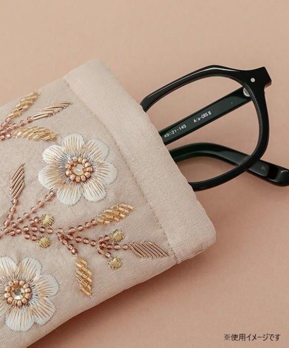 東京かんかん ビーズ刺繍メガネケース ベージュ M42-2494BE 收藏