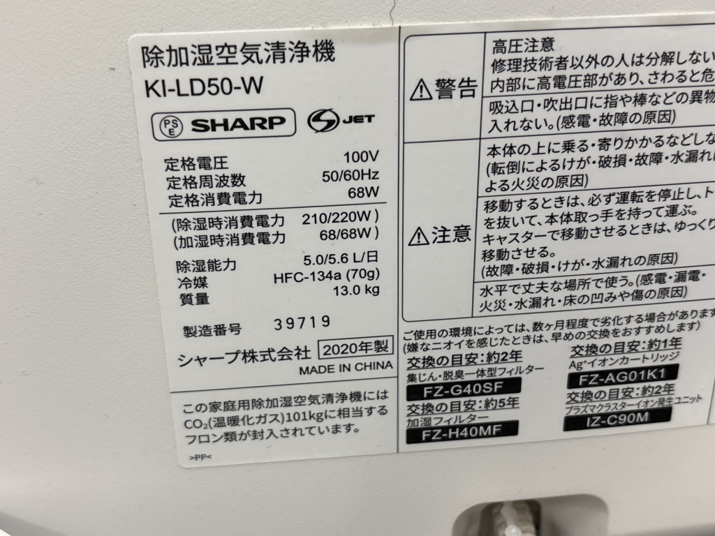 ◎【シール跡あり】SHARP シャープ 除加湿空気清浄機 KI-LD50-W 2020年製 ホワイト系 TW228481 收藏