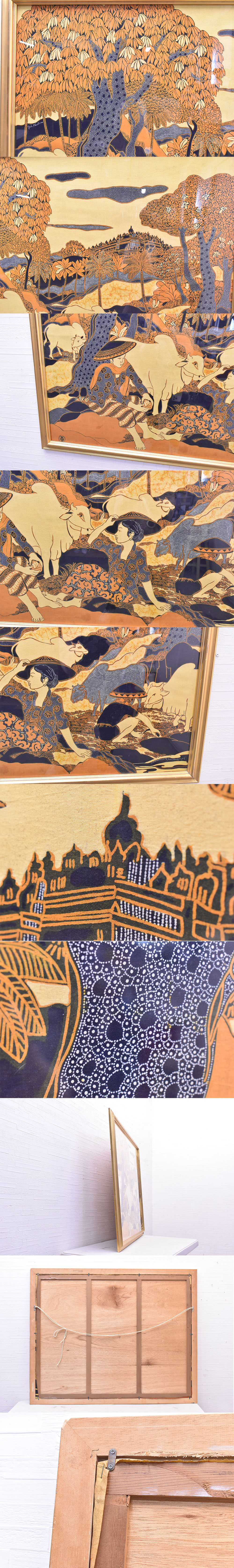 ●【作者不明】絵画/布アート/バリ島/バティック/ろうけつ染め/アート/サインあり/壁掛け/額装/インテリア/U26QE1202 收藏