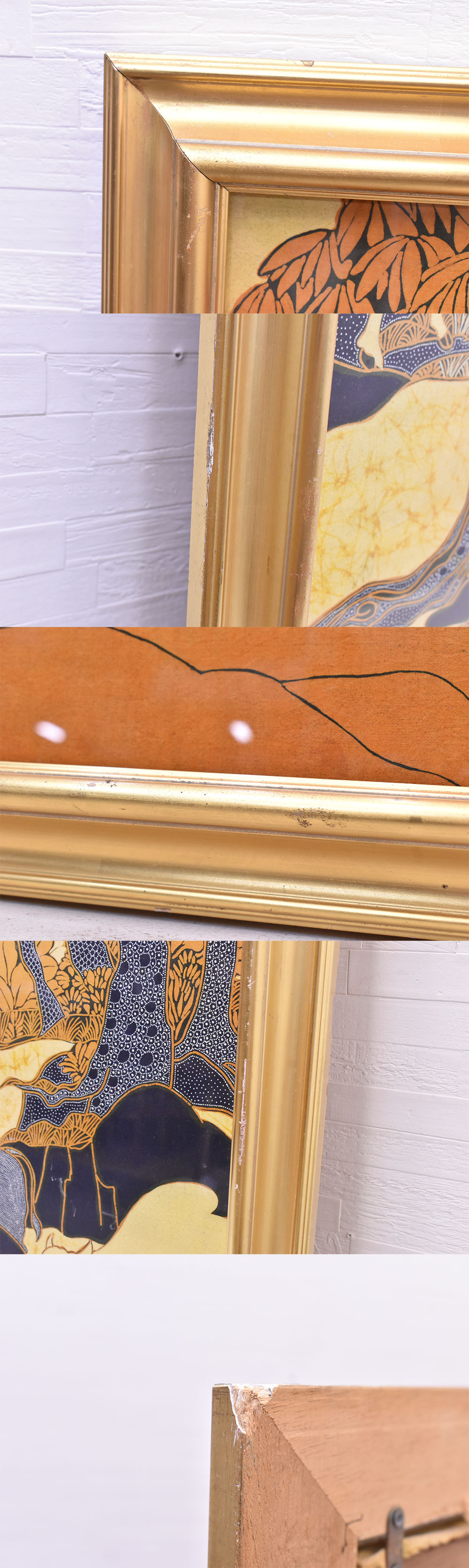 【作者不明】絵画/布アート/バリ島/バティック/ろうけつ染め/アート/サインあり/壁掛け/額装/インテリアの出品になります。 コンディション 経年による傷や汚れがあります。 撮影状況や光の加減で画像の色合いが現物と若干異なる場合がございます。 画像に写っているものが全てです。 現状でのお渡しとなります。 神経質な方のご入札はお控えください。 上記の点をご理解ご了承いただいた上で、ご入札お願いいたします。 |