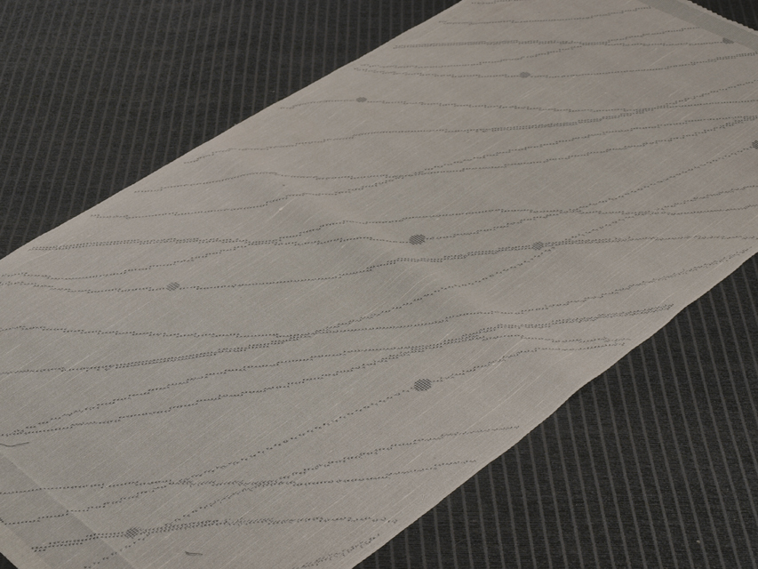 灰白色 (かいはくしょく)の地に、絣で露芝と流水が合わせられた文様が織り込まれている夏紬のはぎれです。透け感があります。 未使用保管品ですが、残布のはぎれです。若干の経年によるくすみなどはあるかもしれませんが、目につくしみやよごれ、褪色などのダメージはなく、ほぼ新品同様にきれいな状態です。※風楽の出品内で同じ柄のものを複数出品している場合もあります。 |
