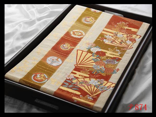 蔵【テ874】西陣逸品 錦織 扇面花鳥紋 蒸栗色地 気品豊かに 正絹純金糸六通高級美術袋帯 ◇検◇簪着物名古屋帯和装小物帯締め 收藏