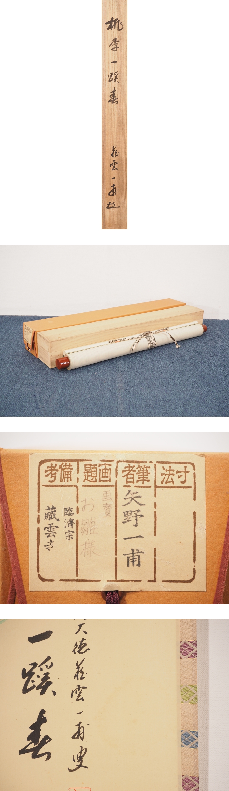 【真筆】【渡鹿庵】[矢野一甫] 16892 掛軸 書 日本画 「桃李一渓春」 共箱 紙本 臨済宗 大徳寺 蔵雲寺 在銘 收藏