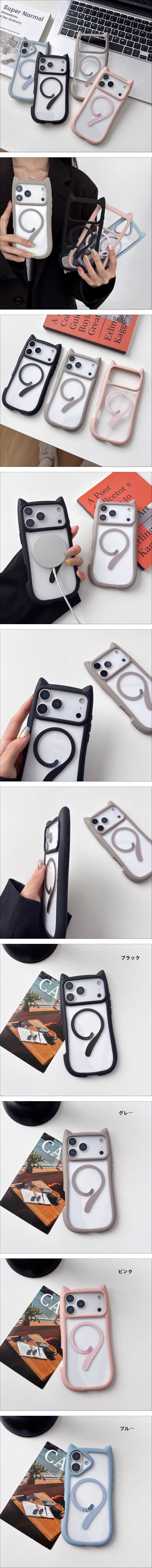 iPhone17 ケース アイフォン17 ケース 6.3インチ 猫耳デザイン 磁吸 マグネット 無線充電 ふち厚 防 シンプル 個性 動物系 かわいい 透明 收藏
