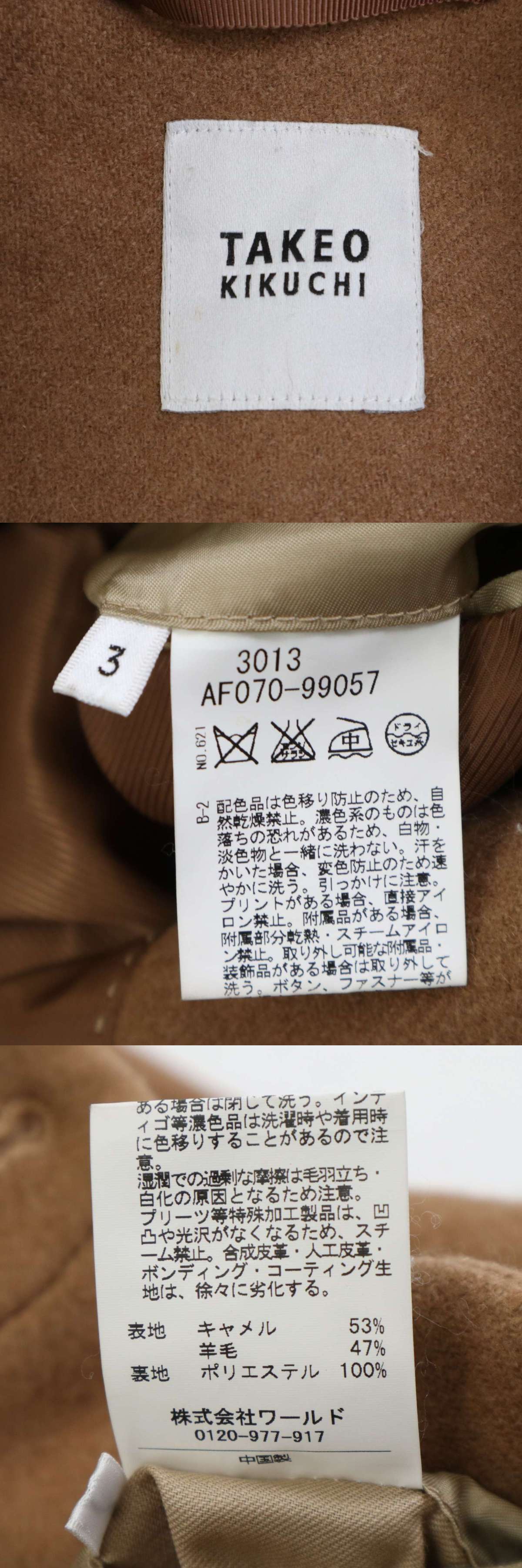 TAKEO KIKUCHI タケオキクチ 秋冬 キャメル ウール混★ スタンドカラー コート Sz.3 メンズ 收藏