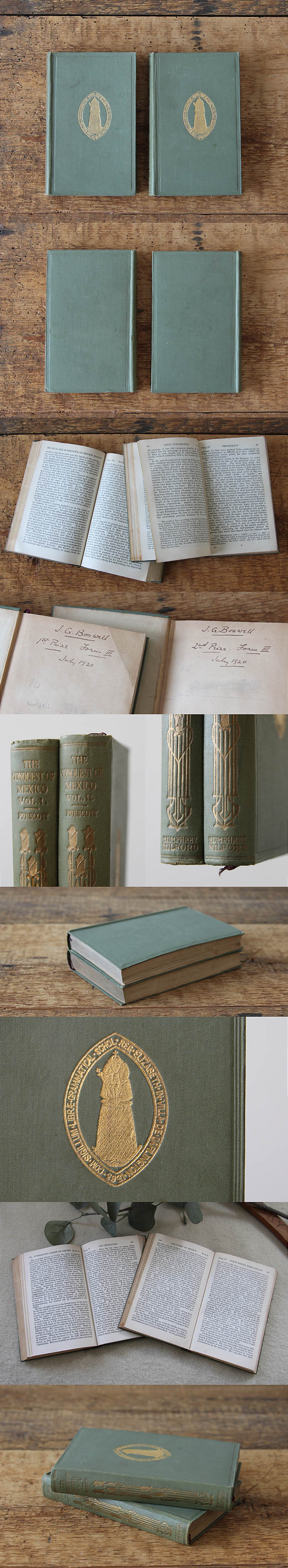 ●イギリス アンティークブック2冊 古本 洋書 ディスプレイ インテリア 雑貨 店舗什器「The conquest of Mexico」Q-091 收藏