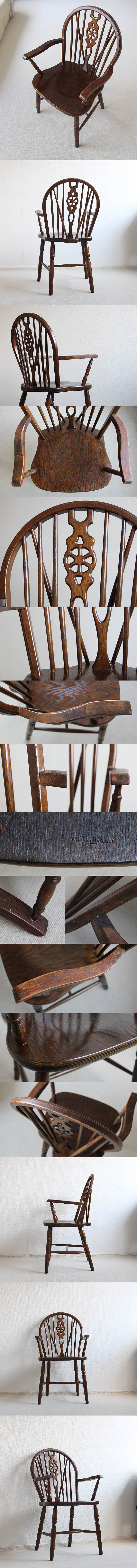 ●ルーマニア製 アンティーク調 ホイールバックアームチェア 木製椅子 インテリア 家具 店舗什器「ウィンザーチェア」Q-093 收藏