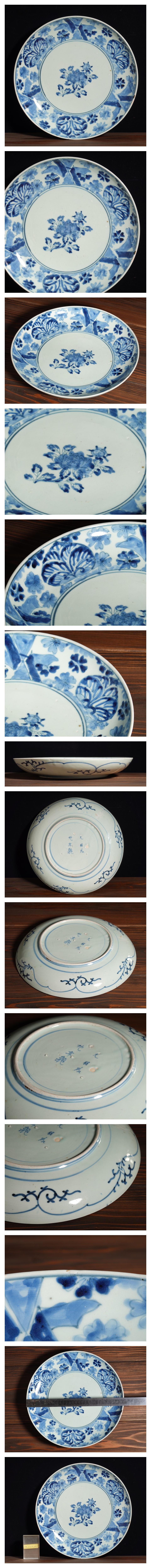 【聖陽堂】江戸時代 古伊万里 染付 牡丹文 大皿 尺皿 飾皿 額皿 陶額 18世紀【大鉢 菓子器 うつわ 料理屋 料亭】 r8 0128 02 收藏