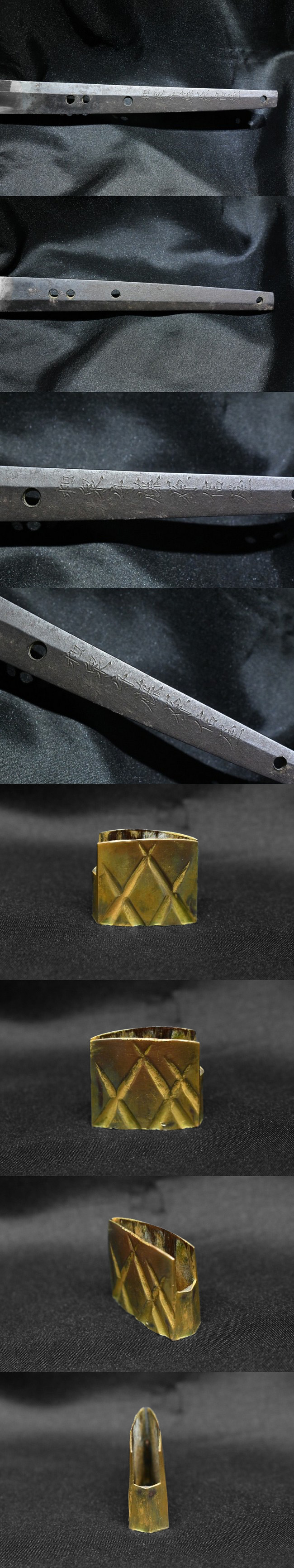 表【和泉守藤原信屋】 裏【-】 種別: 刀 サイズ:長さ 67.8cm 反り: 1.4cm 目くぎ穴 4個 元幅:約 2.905cm 元重:約 0.731cm 先幅:約 1.974cm 先重:約 0.506cm 刀身重量:約 731.4g(ハバキ・柄をとった状態) ハバキ重量:約 20.0g 鞘全長:約 98.0cm |