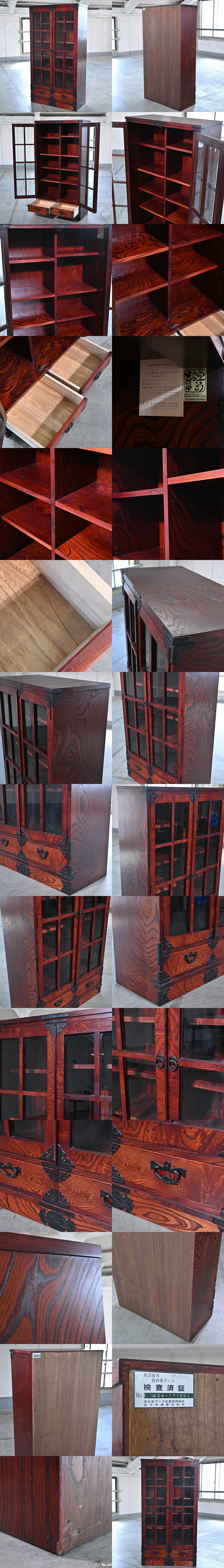 岩谷堂箪笥 60万「No.224 三尺書棚」タンス 欅材 拭漆塗り 南部鉄器金具 引き出し キャビネット 収納 リビング 本 雑誌 書斎 和 民芸家具 收藏