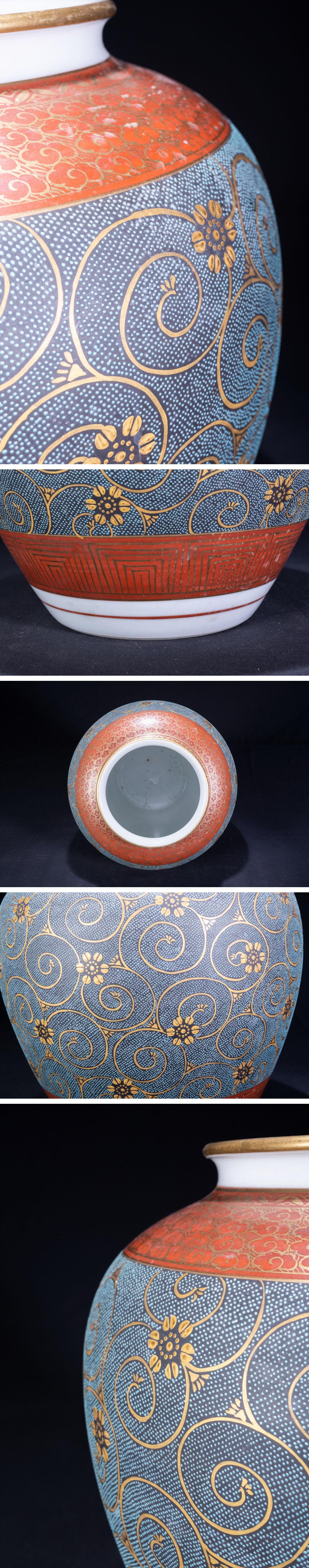 【珍品堂】1円から 九谷焼 泉山 作 金銘 金彩青粒 花瓶 飾り壺 時代物 古美術 骨董品 H27cm M-A33Q-F3 收藏
