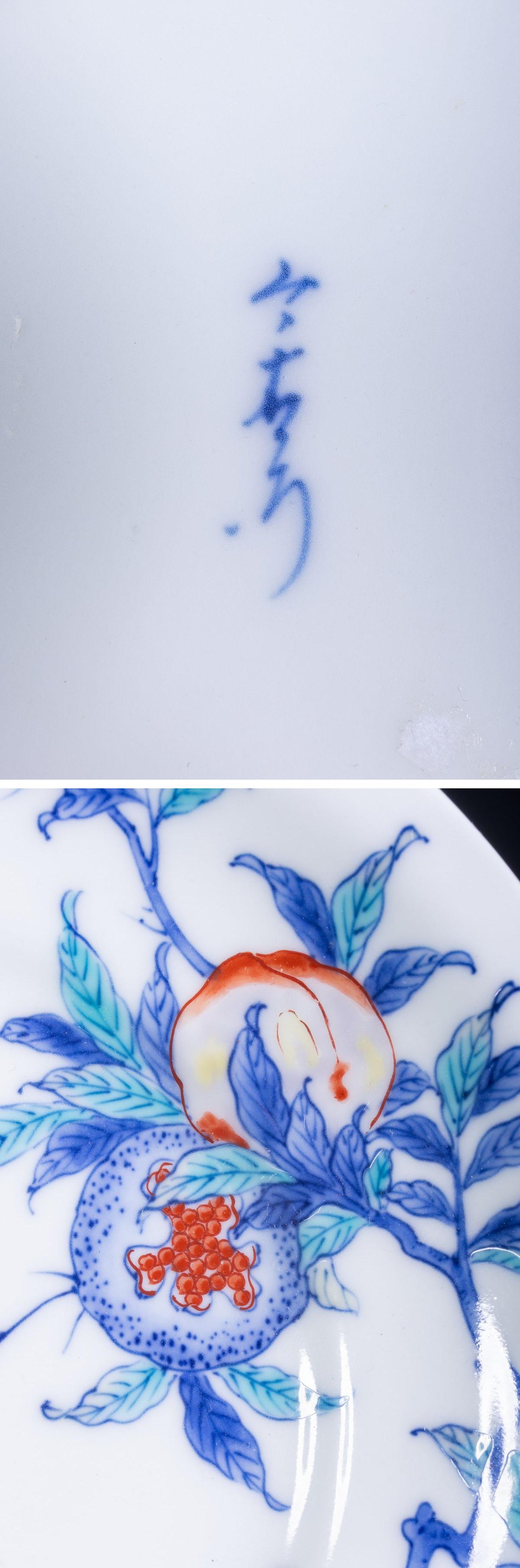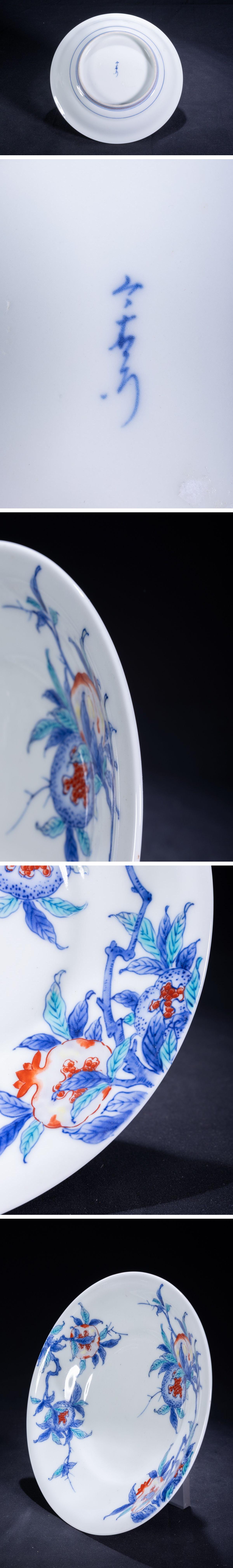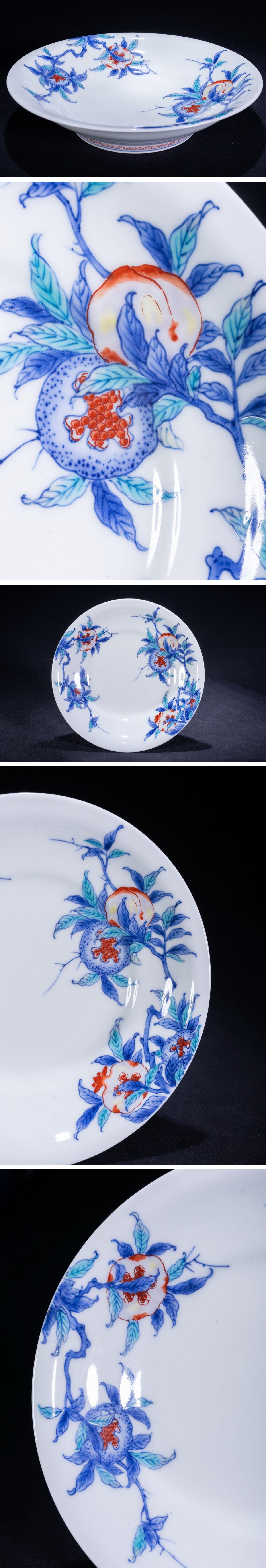 【珍品堂】1円から 今右衛門窯 染錦 色絵 柘榴花 飾皿 皿 和食器 伝統工芸 人気 古美術 時代物 骨董品 径21.4cm M-A61X-F3 收藏