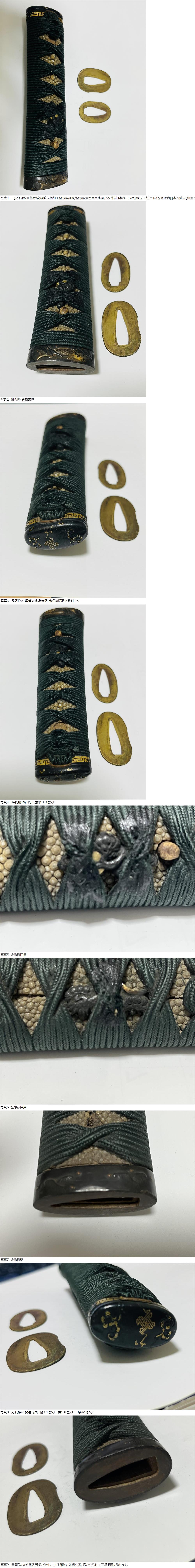 | 【尾張拵/興善寺/高級鮫皮柄前+金象嵌縁頭/金象嵌大型目貫!切羽2枚付】戦国~江戸時代/時代物日本刀武具【柳生の里より蔵出し品】 |