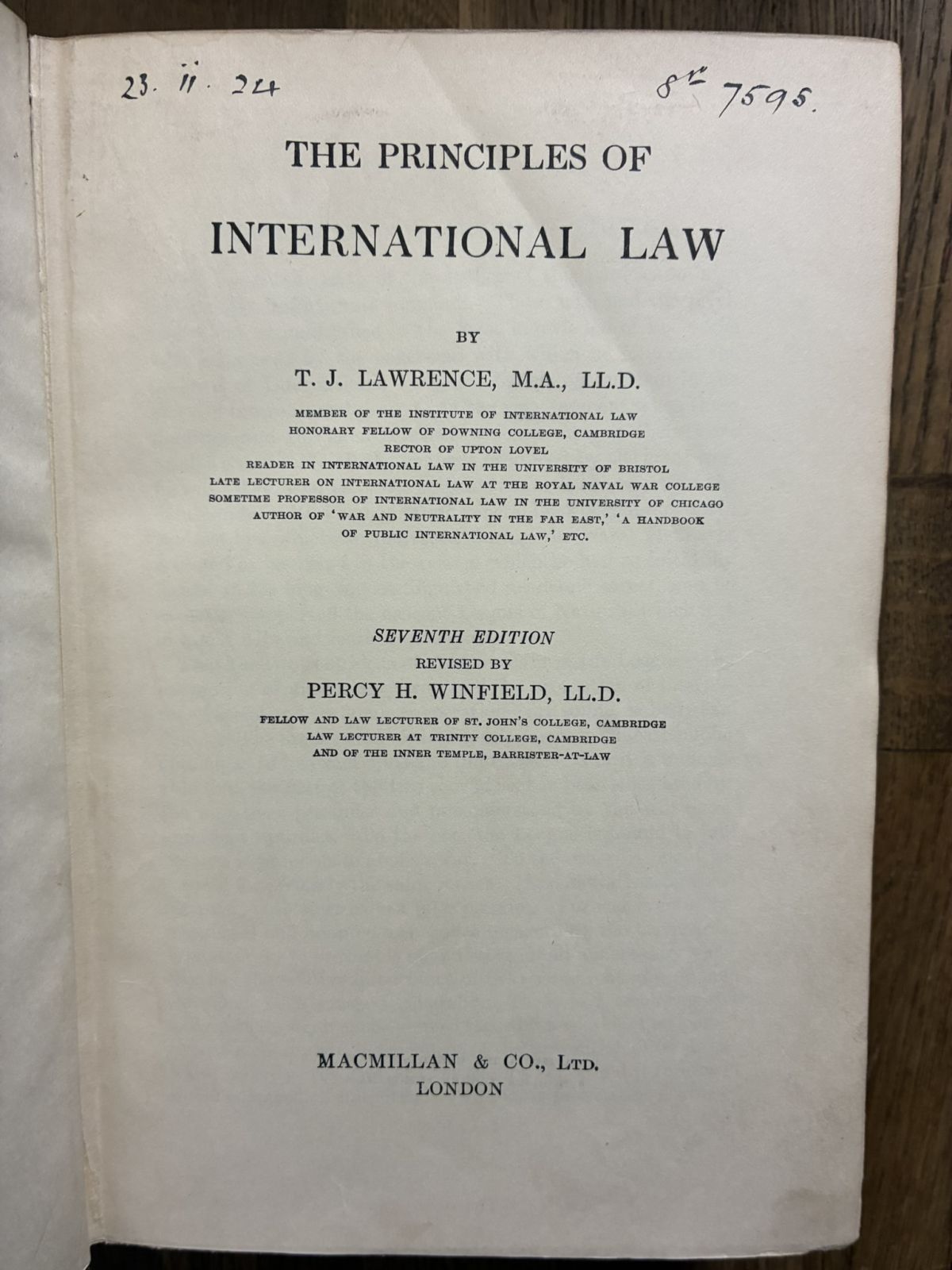 トマス・J・ローレンス『国際法原理』T. J. Lawrence, The Principles of International Law. 洋書古書 收藏