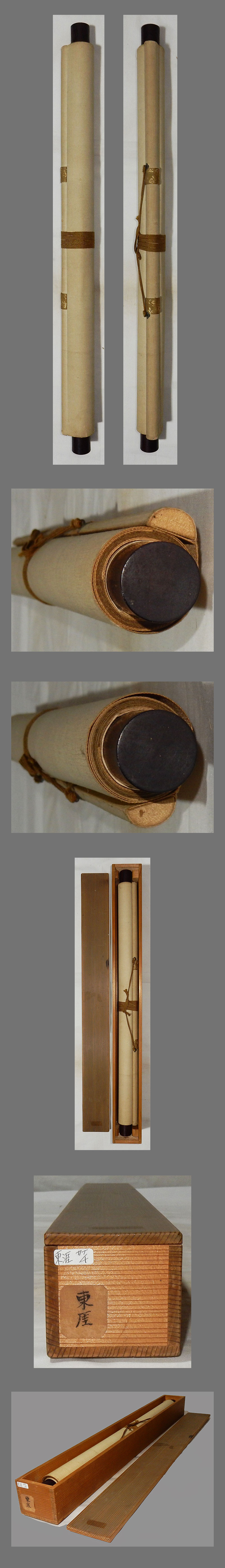 ・掛軸の軸先ですが、細心の注意を払って梱包しておりますが、 配送中の振動・気温・経年劣化等で外れてしまうことがあります。 軸先の外れは、破損ではございませんので、返品の対象にはなりません。 大変お手数ですが、お客様ご自身での修復をお願い致します。 ・添付写真の画像と説明文でご理解頂ける方、ご入札を宜しくお願い致します。 ・添付写真の画像は撮影の光度により、現物と若干の色合いの相違が生じる事があります。 ・添付写真の画像は受取完了のご連絡を頂いた後に速やかに消去しますのでご了承下さい。 ・土・日・祝日はお休みさせて頂きますので、商品発送は、月曜日以降になります。 ・祝日の場合は、翌日の平日以降の発送になります。 ・土・日・祝日は、メールの返信が若干遅れる事がございます。どうか、ご了承下さい。 ・時間的に余裕がない場合などでお答えが出来ない事も多々有ります。 ご不明な点は落札日前日までに早めにご質問下さい。 ・商品トラブルがあった場合は、直ちにご連絡下さい。 お取引に付きましては迅速・丁寧に対応させて頂きます。 ・落札後、できるだけ2日以内に連絡(返信)を頂ける方、 5日以内にご入金できる方の御入札を御願い致します。 ・新規の方や評価の総評が悪い方は当方の判断にて、入札取り消しを行う場合がございます。 ・お取引に付きましては、迅速、丁寧に対応致しますのでどうぞ、宜しくお願い致します。 ・古美術品や古物や古書画の出品が多いため、神経質な方がご入札される場合は、 ご自身が納得の行く価格でご入札ください。 ・万一、ヤフーのシステム障害により、公正なオークションができなかったまま終了し、 落札者様にご落札された場合は、当方より取引ナビで取引中止のご連絡を致します。 その時は、どうか、ご了承をお願い致します。 ・終了当日・直前の入札の取り消しは、 トラブルの原因となりますのでご遠慮お願い致します。 ・入札後の取り消し(キャンセル)は行っておりません。 ・落札後のキャンセル・返品はお断りしてます。 入札前によくご確認頂き、間違いのないようにご注意下さい。 |