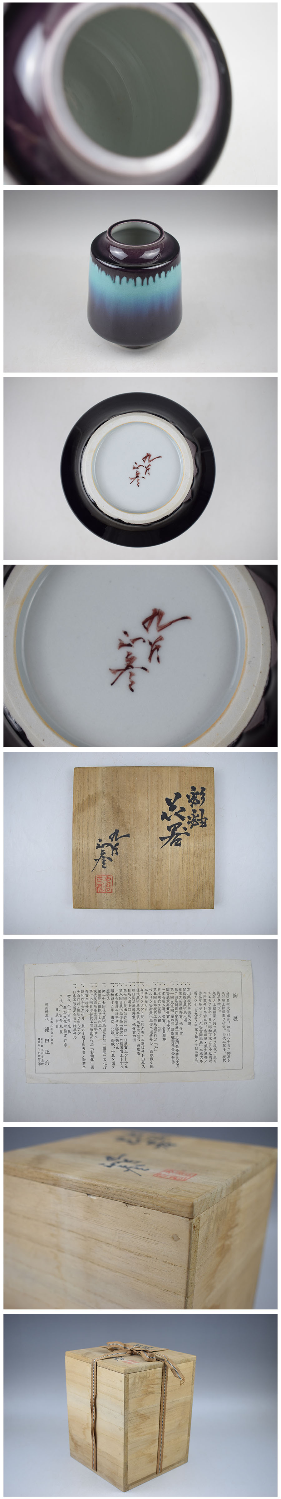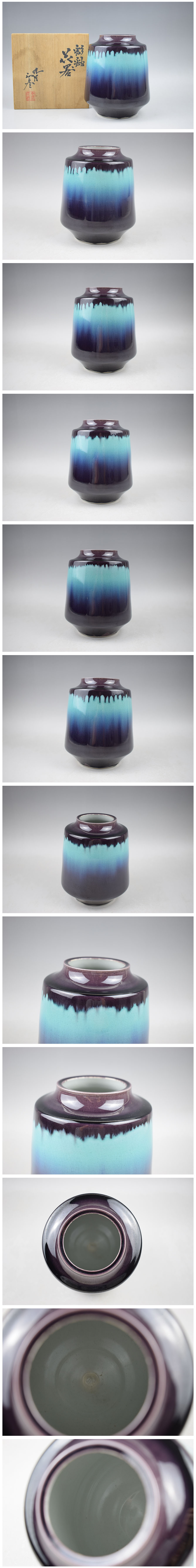 B699 徳田正彦 (人間国宝 三代徳田八十吉) 彩釉花器 花瓶 共箱 真作保証 收藏