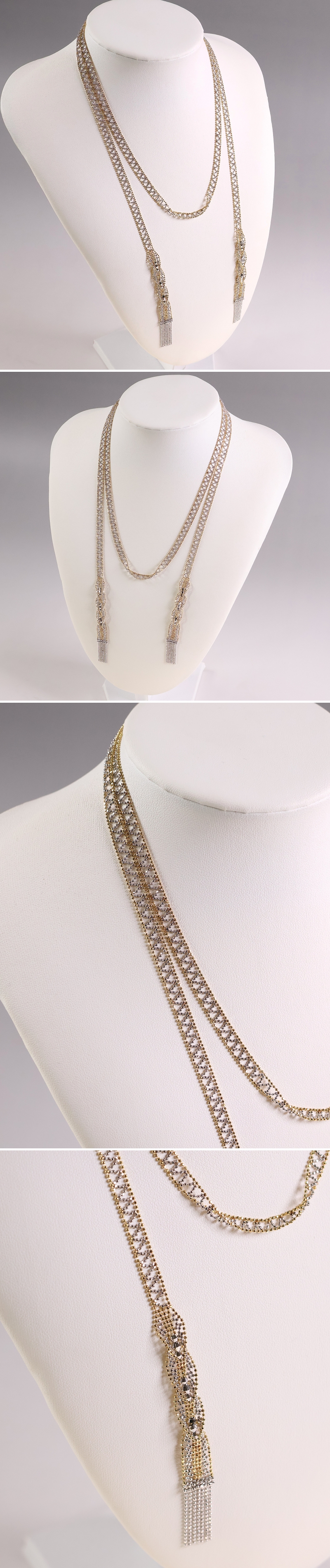 K18WG 繊細レース ラリエット ネックレス 100cm 21.54g フリースタイル デザイン 18金 ホワイト イエローゴールド【K88】 收藏