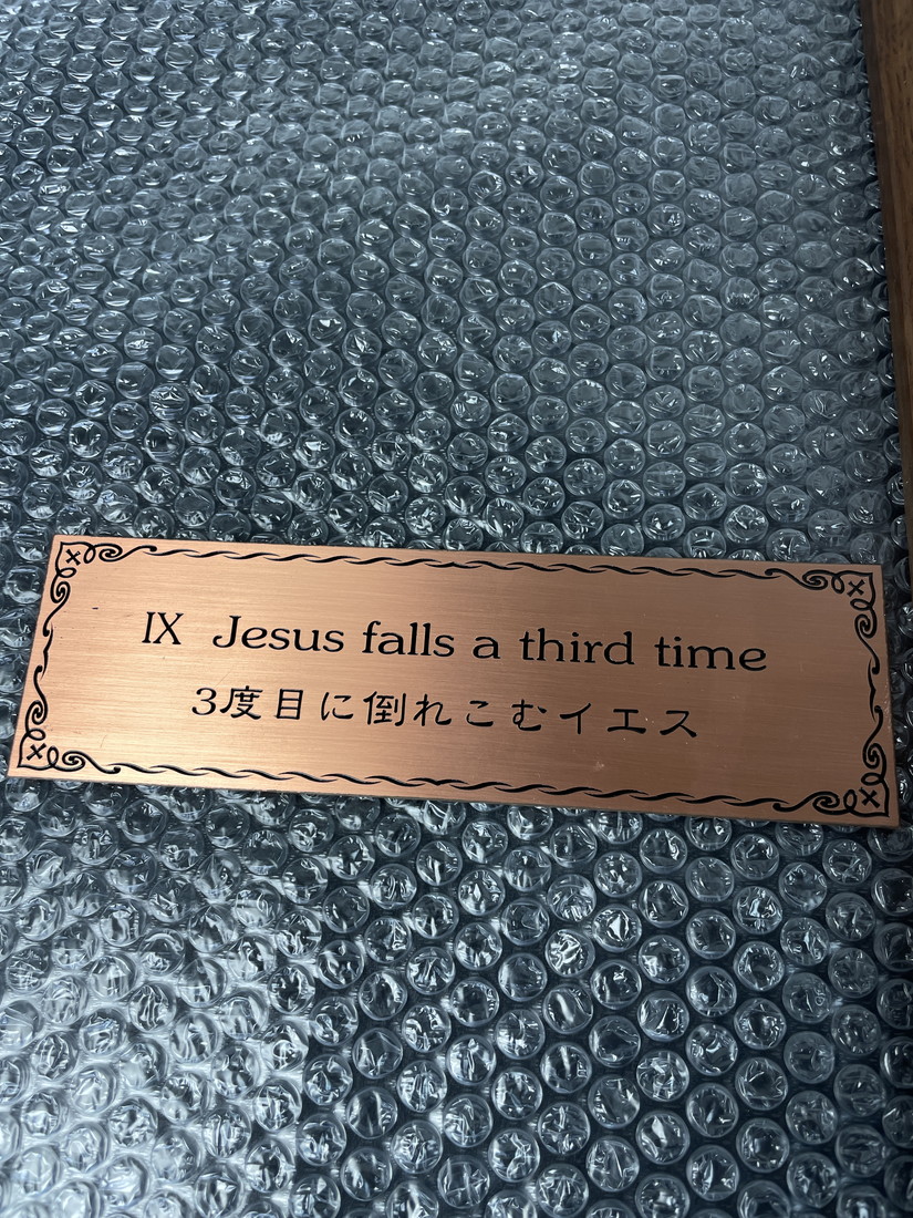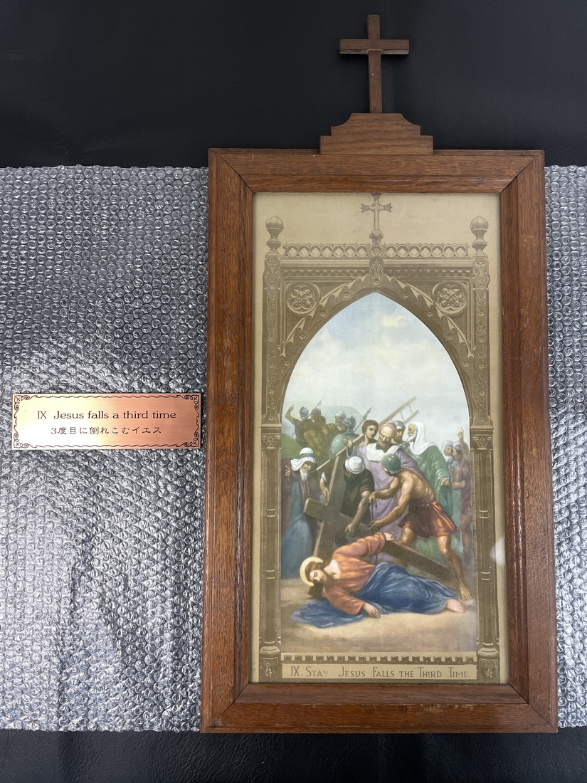 キリスト教 絵画 第9留 3度目に倒れこむイエス 銘板付 木製フレーム 十字架付 高さ約78cm 現状品 宗教美術 聖画 管Y2878N 收藏