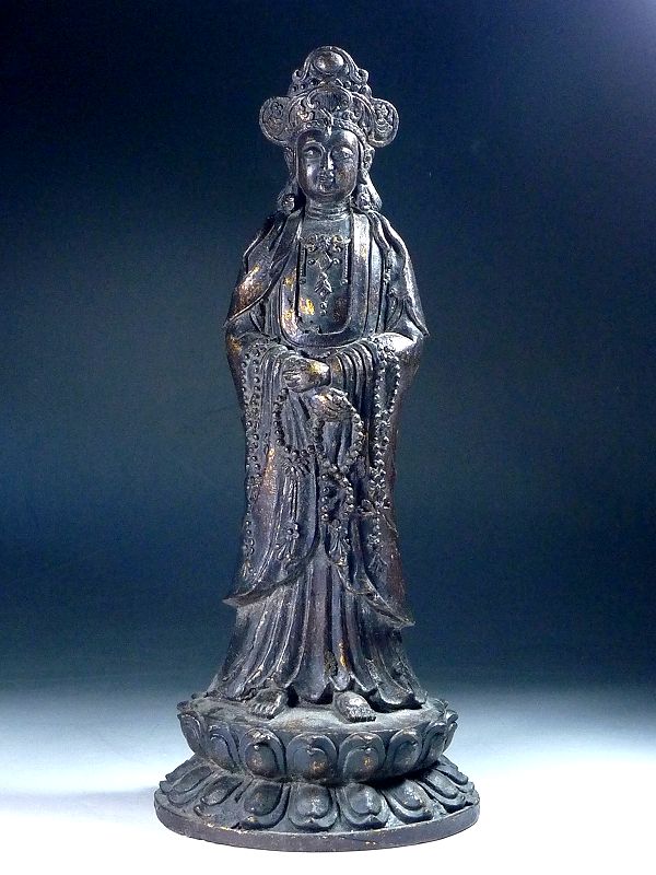 10YT171★仏教美術 銅製 観音菩薩立像 直径34cm 重量2.3kg 仏像 銅像 置物 オブジェ 古銅 收藏