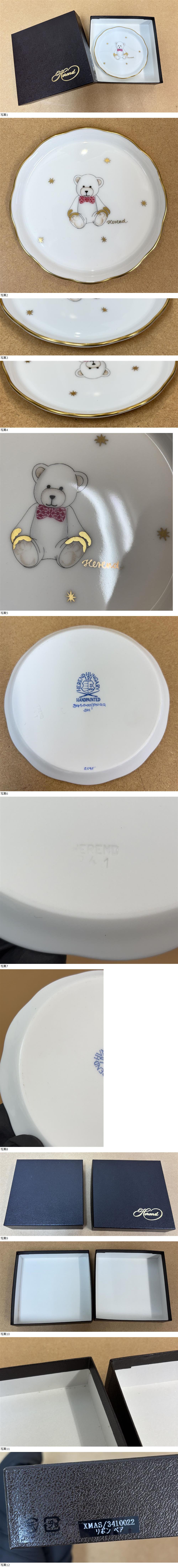 M1628/Herend ヘレンド プチプレート リボンベア ファンシーコレクション/金彩 小皿 豆皿 XMAS 3410022 收藏