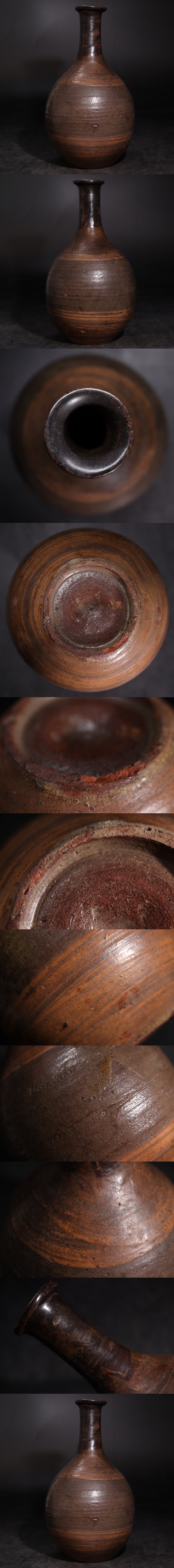 | 時代 黒 刷毛目 徳利 / 朝鮮古美術 李朝 黒高麗 酒器 茶器 煎茶道具 .G3692 |