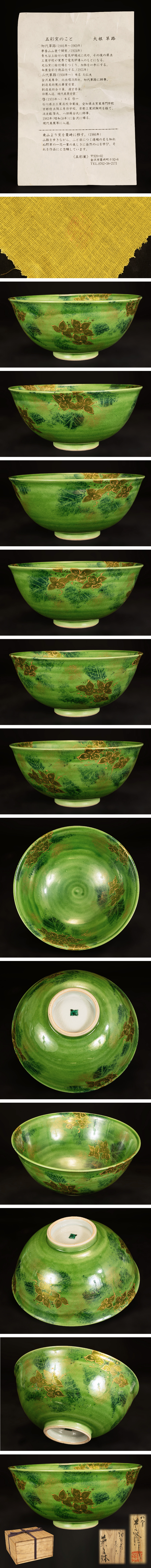 ●大根草路 九谷 釉裏金彩紫陽花 菓子鉢 径21cm 釉裏金彩 あじさい 共箱/栞● 收藏
