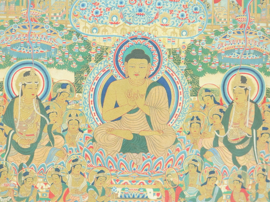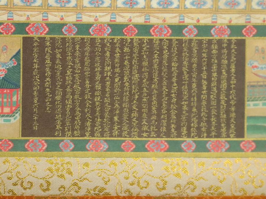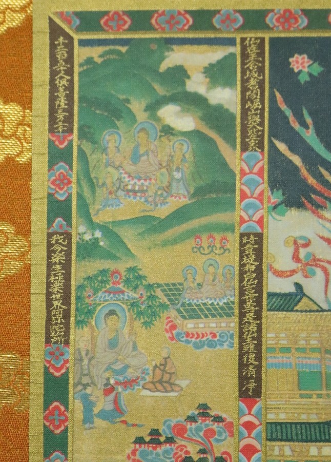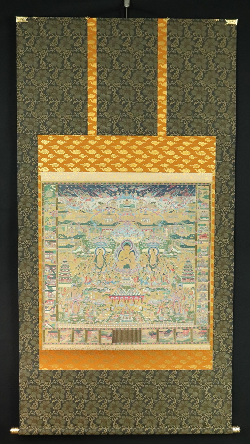 12775■【真作】 入江正巳 美品 中之坊公認當麻曼荼羅模本 絹本 工芸印刷 フランクリンミント 仏画 仏教美術 掛軸 收藏