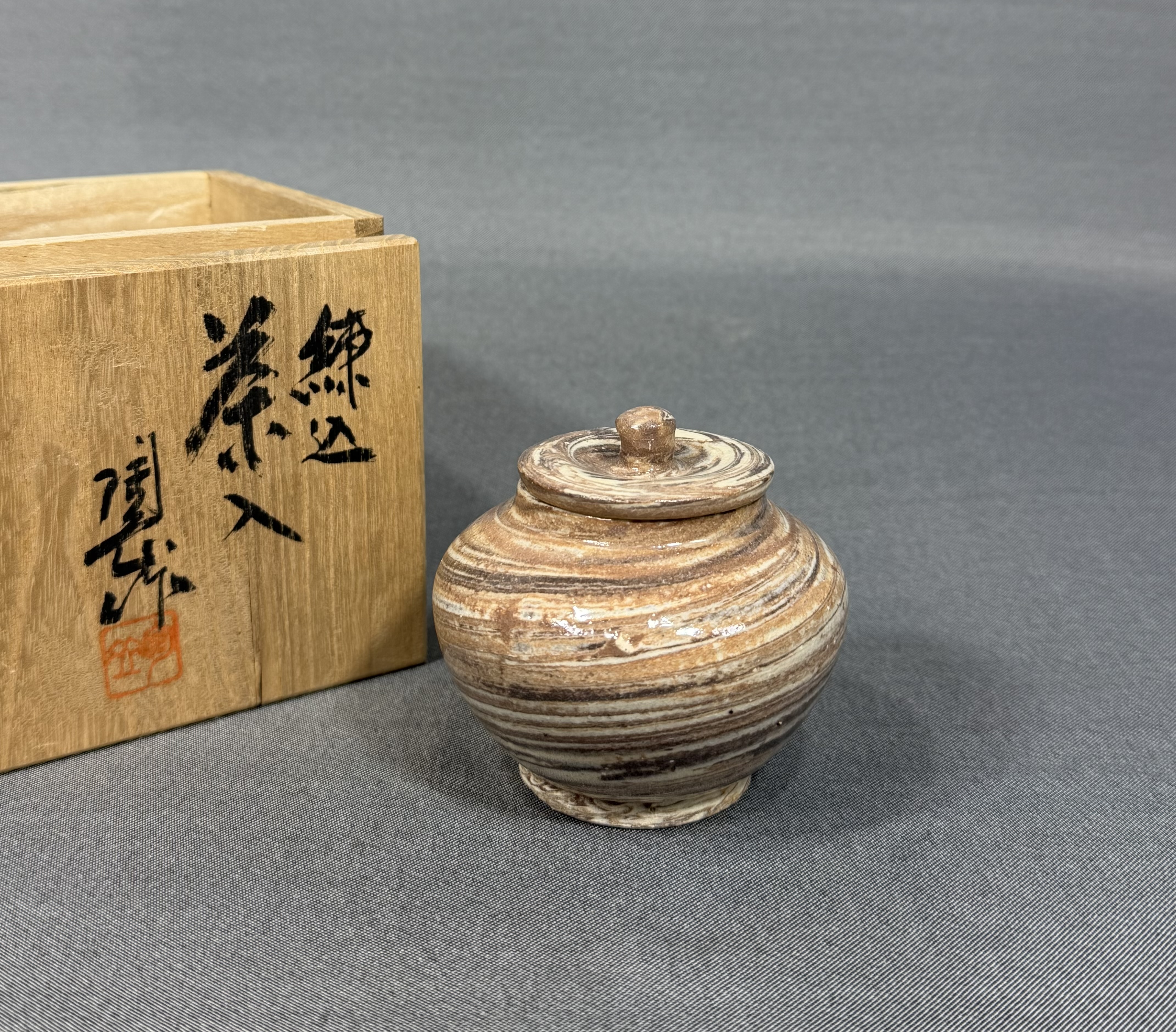 【風車】岡山県重要無形文化財 森陶岳 練込 備前 茶入 ▲共箱 在銘▲ 備前焼 古美術 骨董 古玩 かわいい 收藏