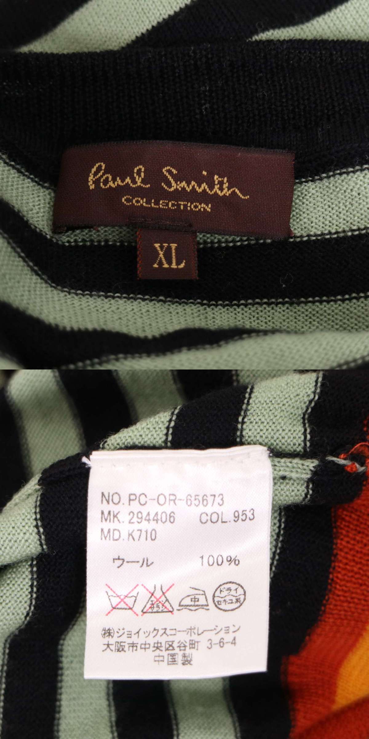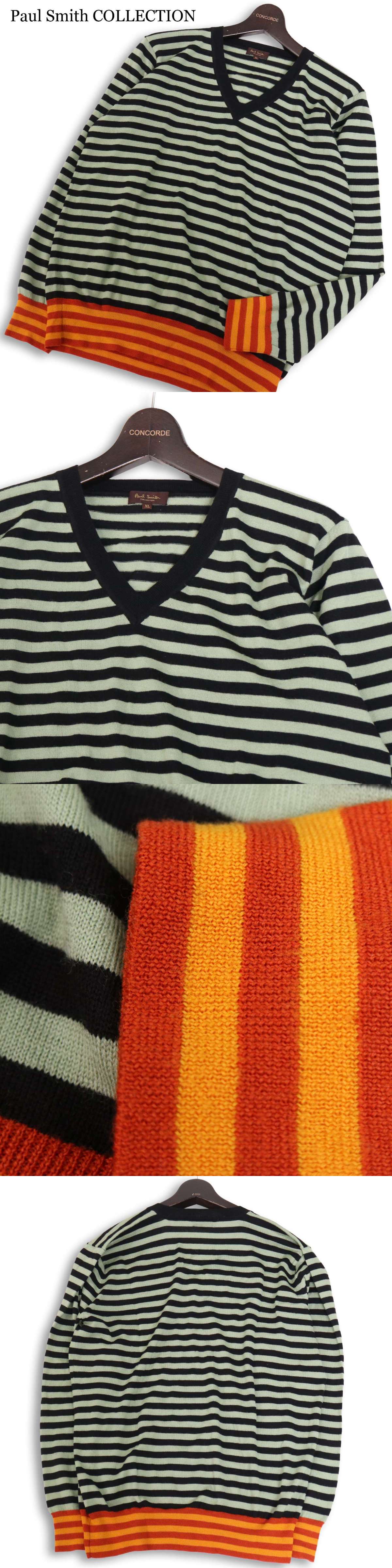 Paul Smith COLLECTION ポールスミス コレクション 秋冬★ ウール100% ボーダー Vネック ニット セーター Sz.XL メンズ 收藏