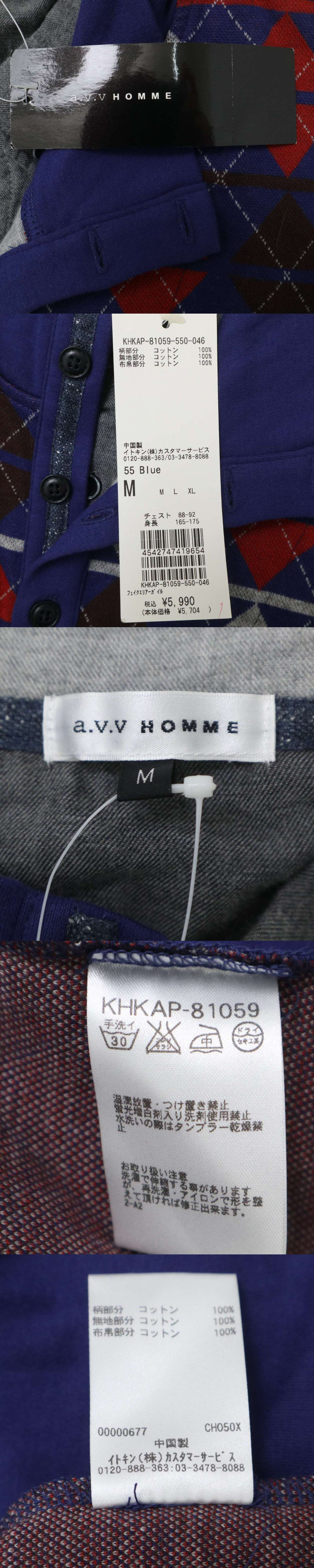 【新品 未使用】 a.v.v. HOMME アーヴェヴェオム シャツ レイヤード風★ 長袖 アーガイル ポロシャツ Sz.M メンズ 收藏