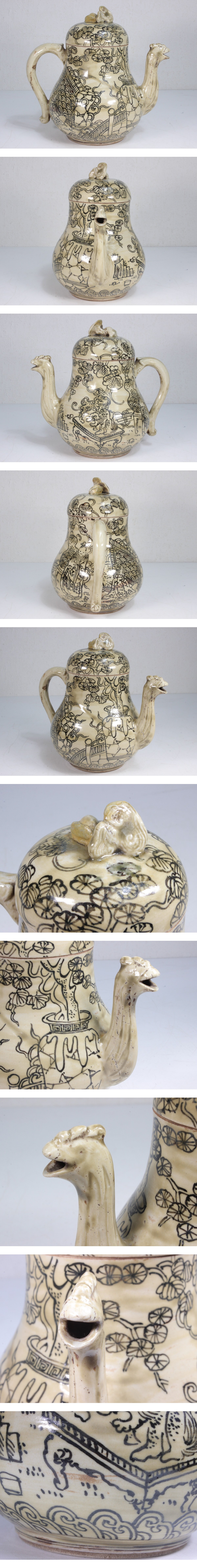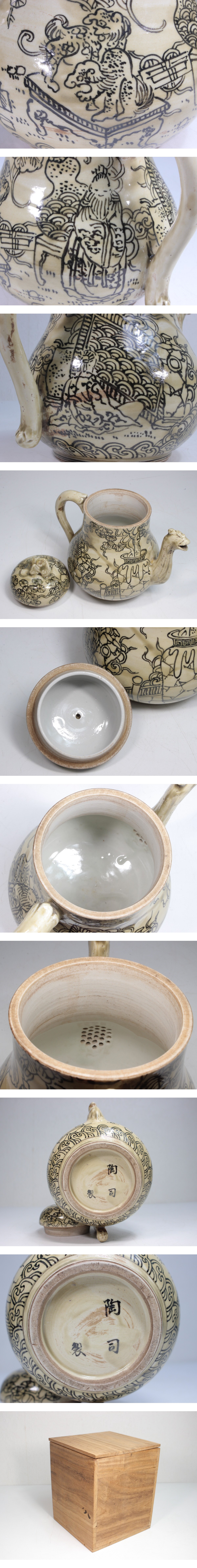 中国 水差 茶器 霊芝摘み 鳳凰口 陶司製 高さ約16.5cm 茶道具 煎茶道具