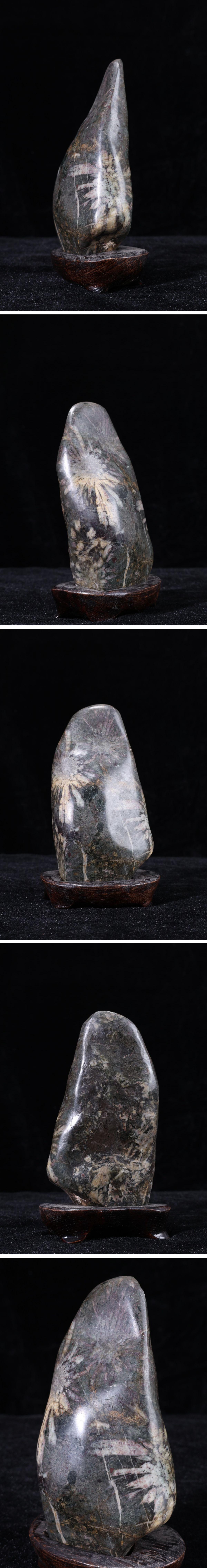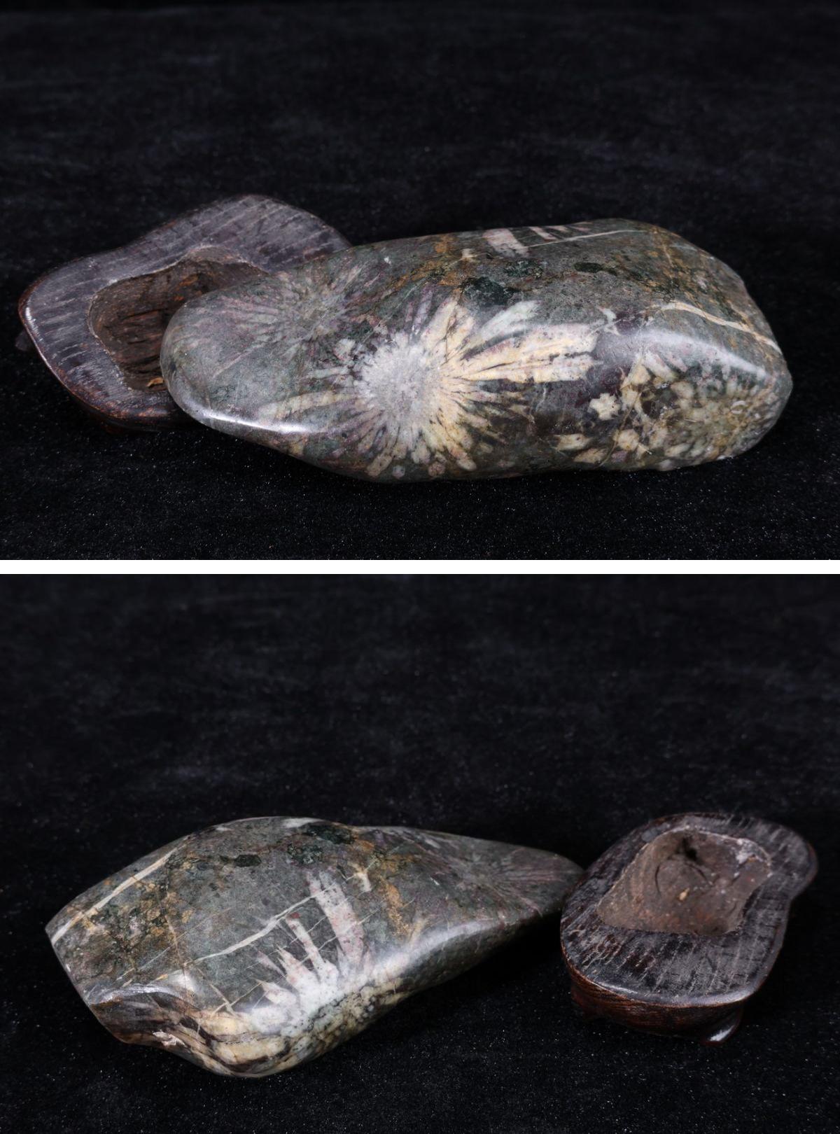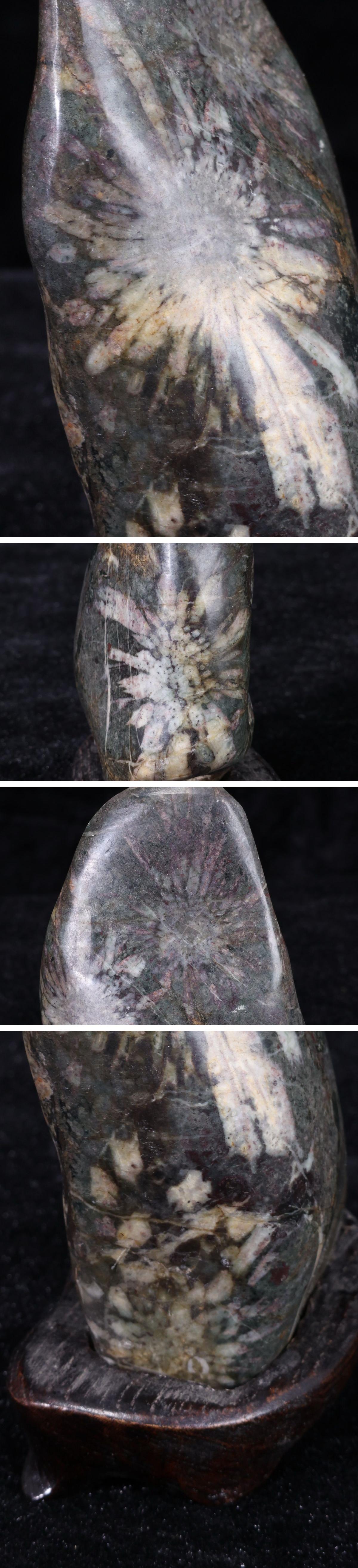 【珍品堂】1円から 菊花石 白菊 紋石 台座付 重465g 鑑賞石 縁起物 原石 天然石 水石 盆石 置物 オブジェ 時代物 希少品 人気 AC25B-J 收藏