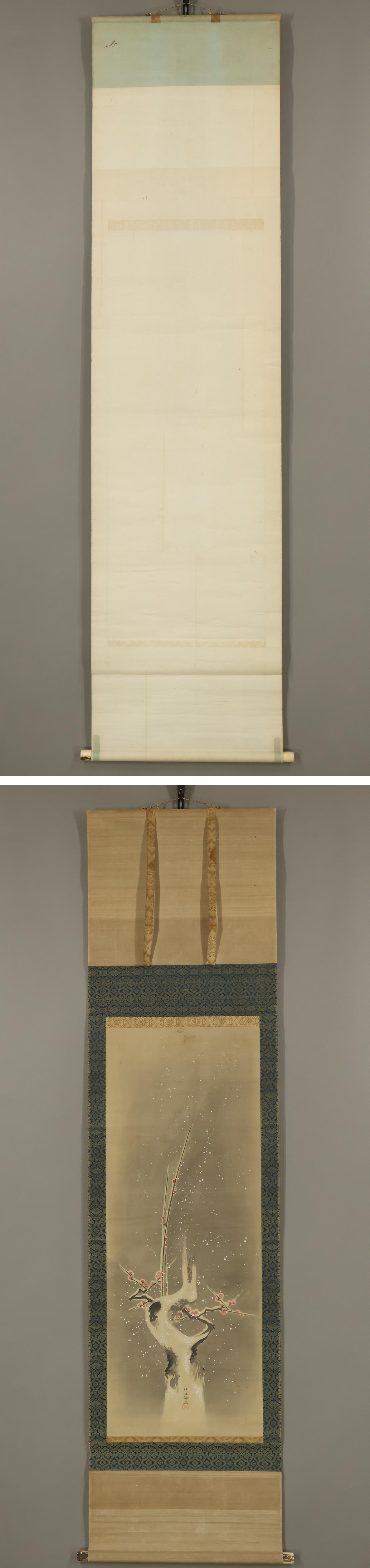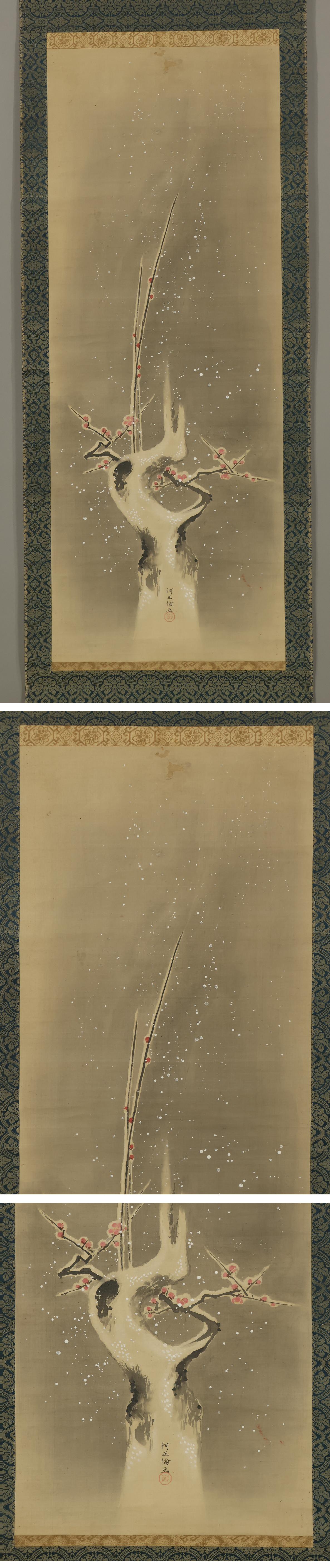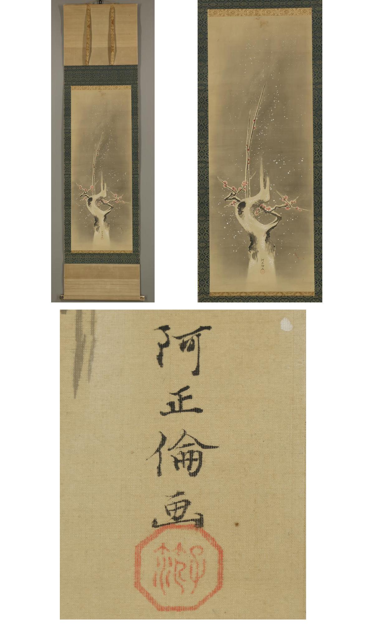 【模写】阿正倫◆雪中紅梅図◆備後福山藩藩主◆広島県◆絹本◆掛軸◆x344 收藏