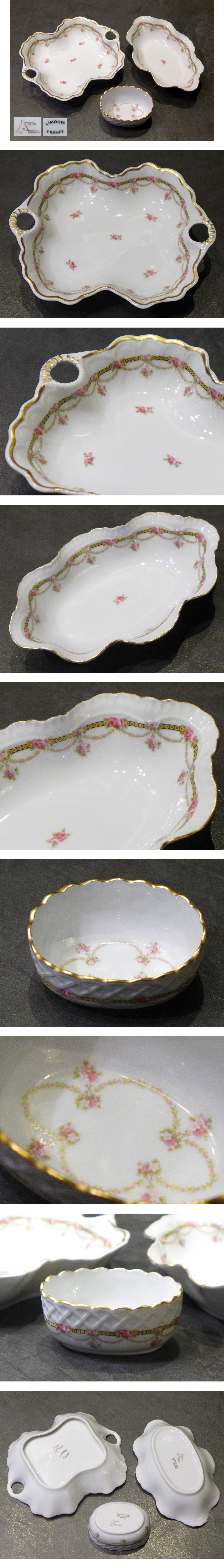 リモージュ Limoges 金彩 薔薇柄 フリルデザイン他 プレート・小物入れ 3点まとめて 検/洋食器フランス製franceセット 收藏