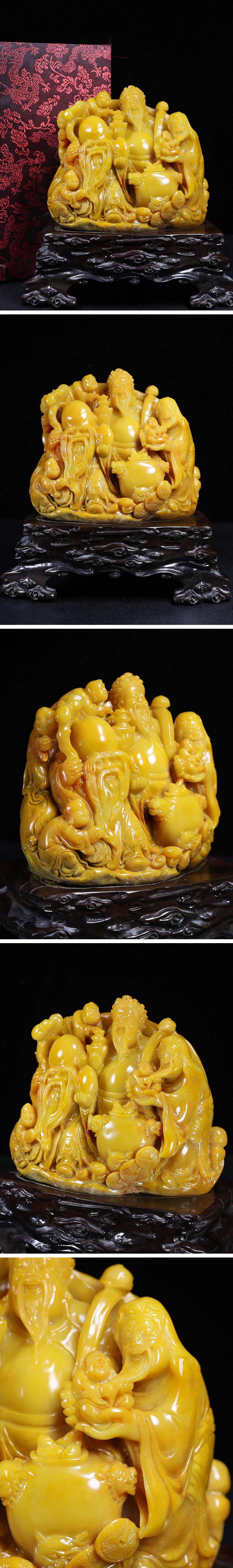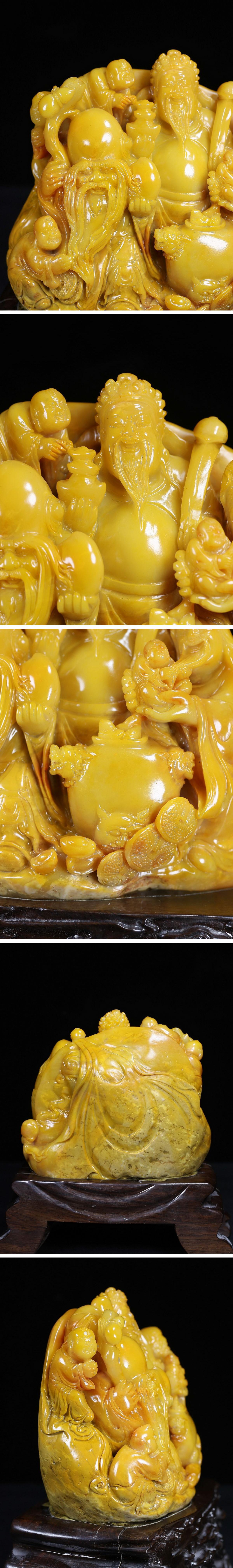【清】関西某オークション購入 中国伝来 清時代物 手彫 寿山田黄石 福禄寿紋置物 当時物 時代コレクション8L1-JX7 收藏