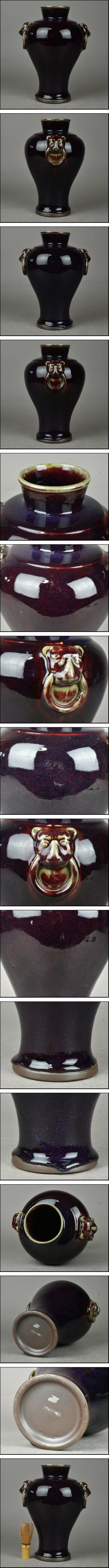【ACT】時代物 辰砂釉 獣耳付 梅瓶 花瓶 花入 飾壷 古美術品 高さ29cm A8-0116-29 收藏