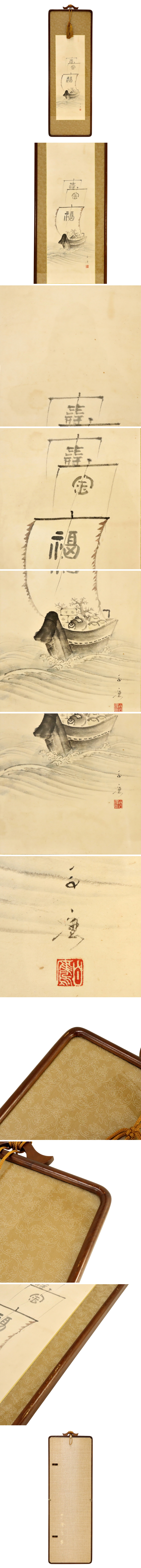 在銘 宝船図 約62×21cm 扁額 絵画 書画 骨董品 美術品 120004wqN 收藏