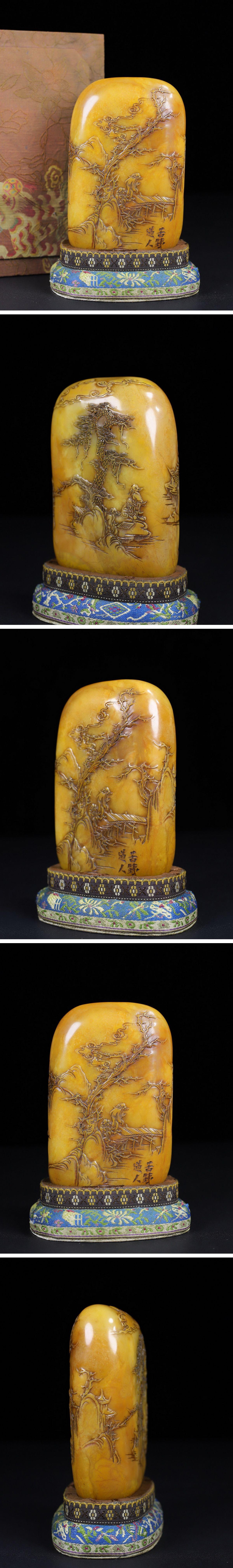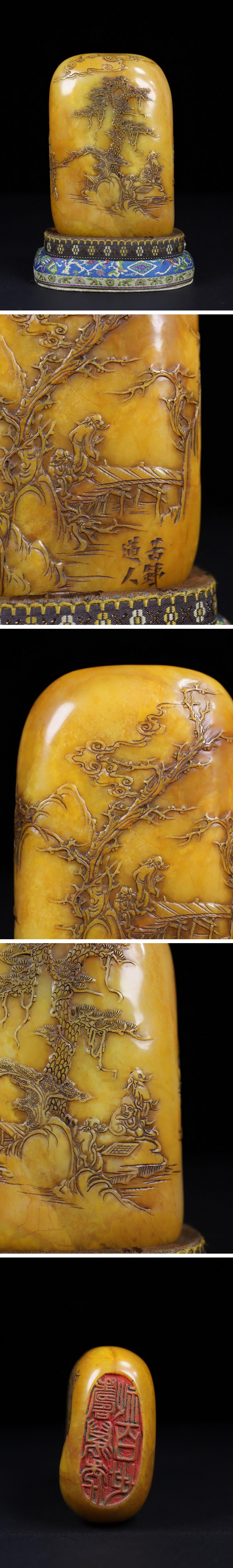 【清】関西某オークション購入 中国伝来 清時代物 寿山田黄石 松下人物紋印章 当時物 時代コレクション8L1-JV4 收藏