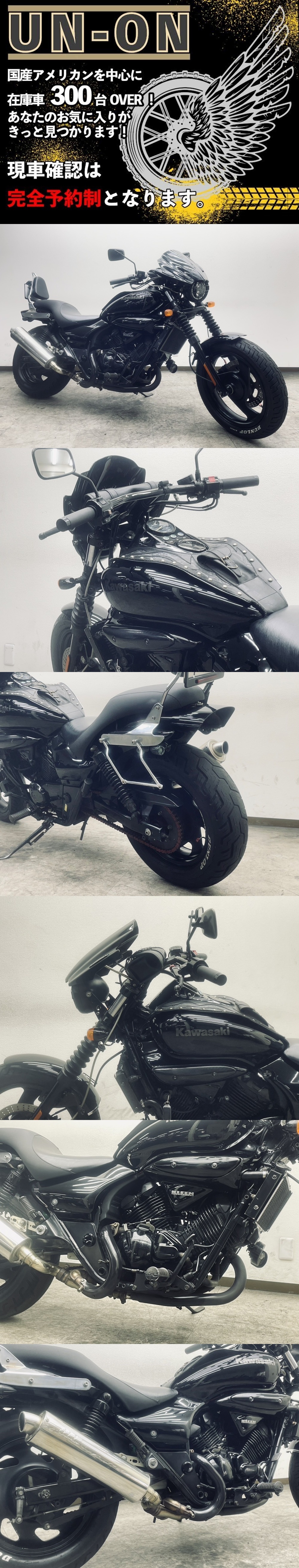 | ~~~~~~ ご注意ください ご注意ください ご注意ください ご注意ください ~~~~~~ 掲載車両は、すべて当社保管倉庫において、直接販売・卸販売をしています。 落札いただいたとしても、商談中の場合やバイクショップ様・業者様が引き上げ直後の場合もあります。 また、落札されても連絡が取れない場合や、ご入金の確認が取れない場合は、他のお客様を優先と致します。 <<<ご連絡先>>>現車確認、大歓迎です! *完全予約制です。必ず事前にご連絡ください* !!! 入札前には、必ずメールか電話にてご連絡ください !!! 電話:045-719-5355 当社HP https://sites.google.com/view/un-on/home メール:unonbike@gmail.com お気軽にご連絡ください お問い合わせの際は エリミネーター250V 管理番号 421 でお願いします! セルにてエンジン始動、アイドリング、吹け上がりともに良好です。 取り扱い車両はすべて中古車・現状引き渡しとなります。 ご入札前には、出来る限り「現車確認」もしくは「お電話」「メール」にてご連絡をお願いします。 車輌状態を説明させていただきます。 【社外パーツについて】 本車両に付属している社外パーツにつきましては、出品前に動作確認は行っておりますが、中古品のため万が一不具合等があった場合でも 保証は致しかねますので予めご了承の上、ご検討くださいますようお願い致します。 電話番号:045-719-5355 メール:unonbike@gmail.com 残念ながら、事前のご連絡がない場合、「誤入札」「誤落札」が多い為、入札・落札を取り消す事もありますので、 予めご了承ください。 >>>>>>>>>>>>>>>>>>>>>>>>>>>>>>>>>>>>>>>>>>>> 当店は業者販売・現状引き渡し専門店になります。 一般のお客様にも、業者価格にて販売しています。 基本的には整備料も頂かず現状販売の形となりますので、ご購入後は「点検・整備・メンテナンス」を行ってからご使用ください。 現車確認・業者販売 大歓迎!! 国産アメリカン中心に 常時 300台前後の車両在庫があります! 現車確認、大歓迎です。 車両引き渡しについては、『自賠責保険加入』『予備車検取得』『登録・届出代行(ナンバー登録)』を完了してからになります。 『登録・届出代行費用』は、 手数料 30000円(税別)となります。 『予備車検取得』については、エンジンサイズや搭載マフラー等によって変わってきますので、まずはお問い合わせください。 走行距離は、メーター表示距離となります。 配送につきましては、当社にて契約している陸送会社様 3社の中から最安を選択して手配いたします。 配送費用については、納車先住所によって異なりますので、お問い合わせください。 デポ持ち込みに関しては7000円(税別)で行います。 なお、落札後のキャンセルは受け付けておりません。ご不明点等がありましたら、必ず入札・落札前にお問い合わせください。 落札後のキャンセルについては、即決価格の10%のキャンセル費用が発生いたしますので、予めご了承ください。 <<<<<<<<<<<<<<<<<<<<<<<<<<<<<<<<<<<<<<<<<<<< 電話 : 045-719-5355 メール:unonbike@gmail.com 現車確認は業者オークションで不在時が多い為 完全予約制です ~~~~~~~~~~~~~~~~~~~~~~~~~~~~~~~~~~~~~~~~~~~~~~~~ 取り扱い車両はすべて中古車・現状引き渡しとなります。 ご入札前には、出来る限り「現車確認」もしくは「お電話」「メール」にてご連絡をお願いします。 車輌状態を説明させていただきます。 電話番号:045-719-5355 メール:unonbike@gmail.com 残念ながら、事前のご連絡がない場合、「誤入札」「誤落札」が多い為、入札・落札を取り消す事もありますので、 予めご了承ください。 >>>>>>>>>>>>>>>>>>>>>>>>>>>>>>>>>>>>>>>>>>>> 当店は業者販売・現状引き渡し専門店になります。 一般のお客様にも、業者価格にて販売しています。 基本的には整備料も頂かず現状販売の形となりますので、ご購入後は「点検・整備・メンテナンス」を行ってからご使用ください。 車両引き渡しについては、『自賠責保険加入』『予備車検取得』『登録・届出代行(ナンバー登録)』を完了してからになります。 『登録・届出代行費用』は、 手数料 30000円(税別)となります。 『予備車検取得』については、エンジンサイズや搭載マフラー等によって変わってきますので、まずはお問い合わせください。 走行距離は、メーター表示距離となります。 配送につきましては、当社にて契約している陸送会社様 3社の中から最安を選択して手配いたします。 配送費用については、納車先住所によって異なりますので、お問い合わせください。 デポ持ち込みに関しては7000円(税別)で行います。 なお、落札後のキャンセルは受け付けておりません。ご不明点等がありましたら、必ず入札・落札前にお問い合わせください。 落札後のキャンセルについては、即決価格の10%のキャンセル費用が発生いたしますので、予めご了承ください。 <<<<<<<<<<<<<<<<<<<<<<<<<<<<<<<<<<<<<<<<<<<< |