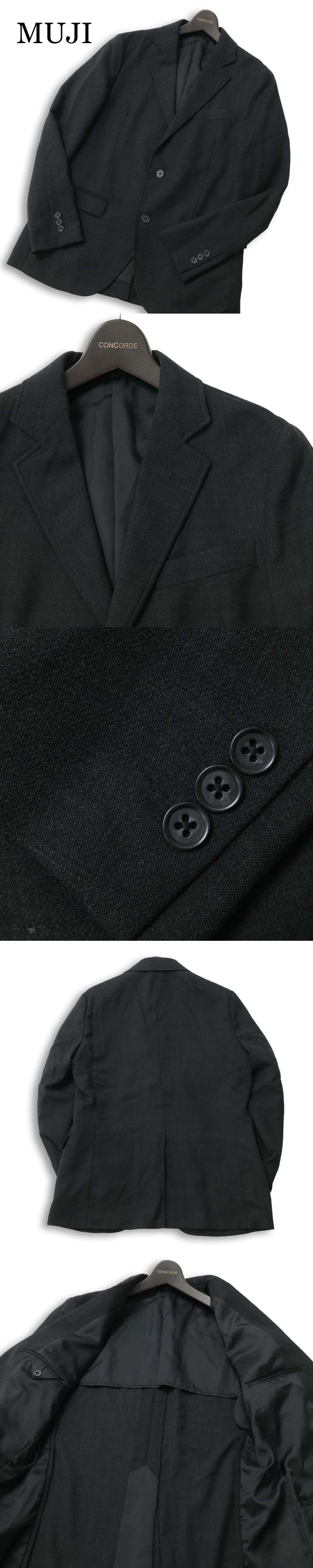 MUJI 無印良品 通年★ ウール ストレッチ 背抜き アンコン テーラード ジャケット Sz.M メンズ 灰 ビジカジ 收藏