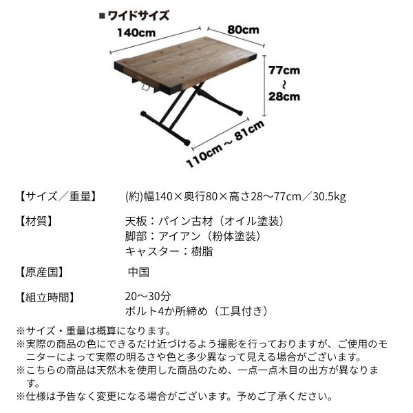 ![]() 天然木無垢材 昇降テーブル ワイドサイズ 幅140cm ![]()